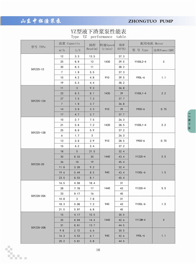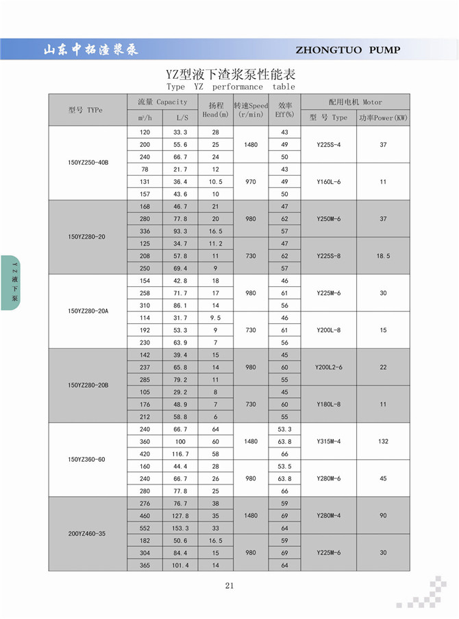 二、規格型号 例(lì)80YS80-2.0MYS-液下重型砂漿泵(beng) 80-泵的出口直徑(mm)80-泵(beng)的設計點流量💰(m3/h)2.0M-液(yè)下深度2000mm4、泵的傳動(dòng)方式:泵通過彈性(xing)聯軸器與電動😘機(jī)連接,從原動機方(fāng)向看泵為順時針(zhēn)方向旋轉。